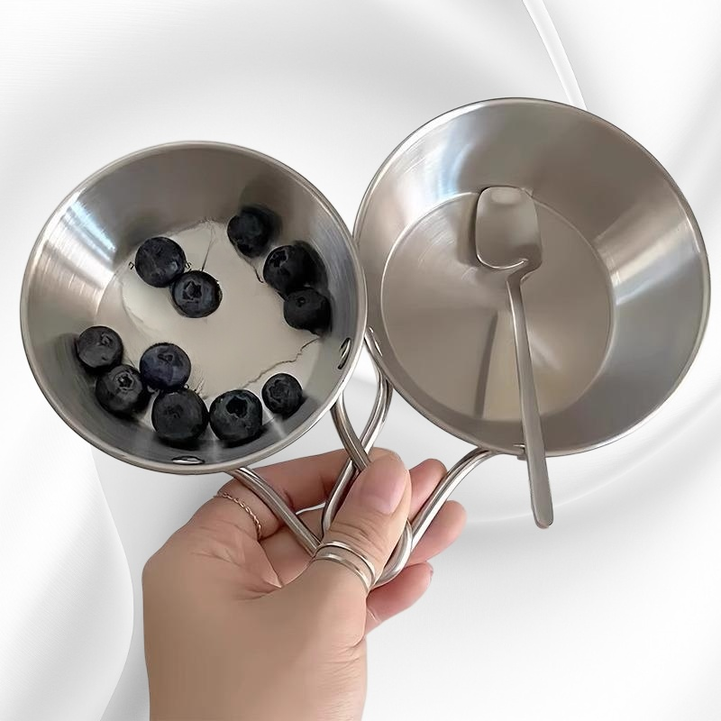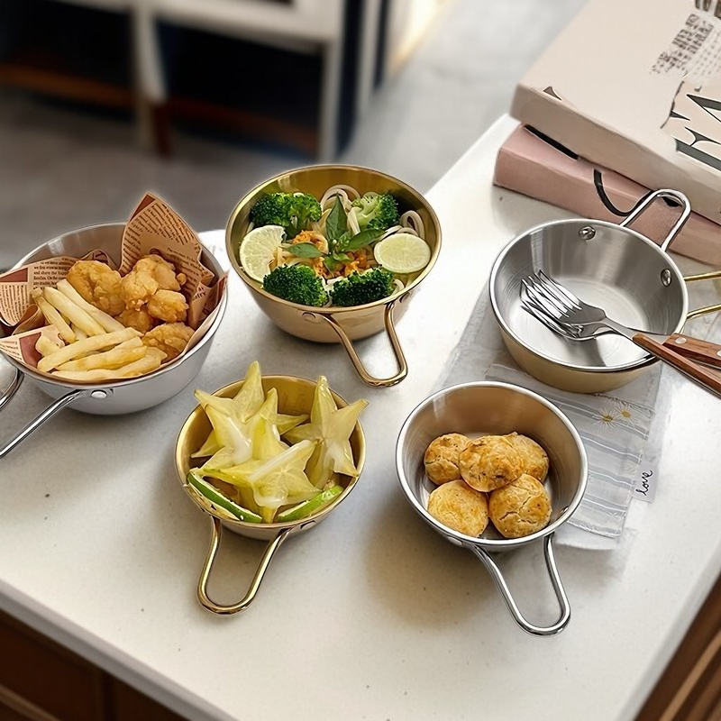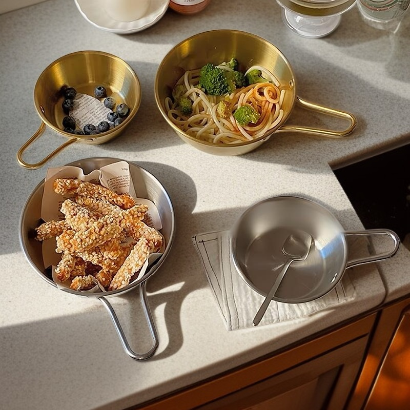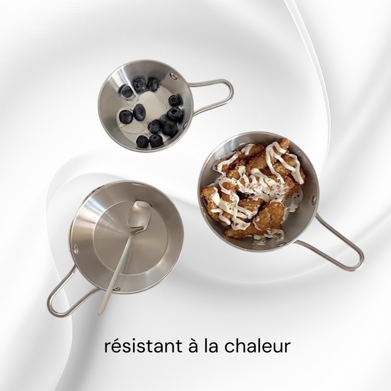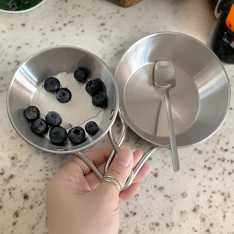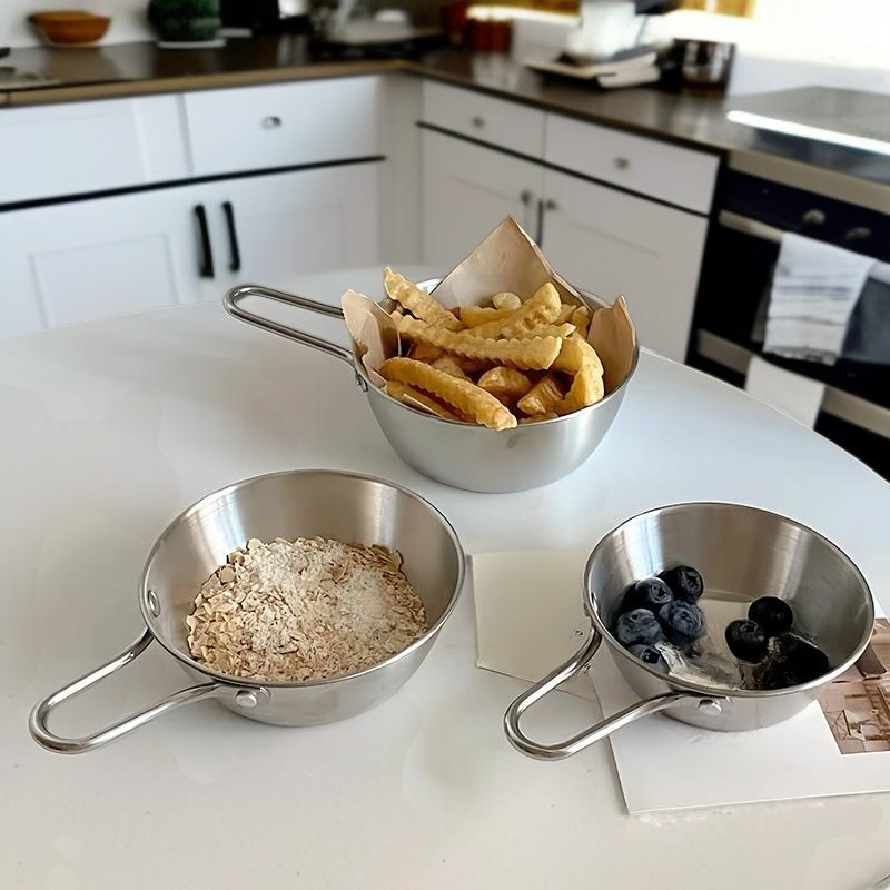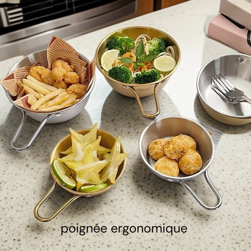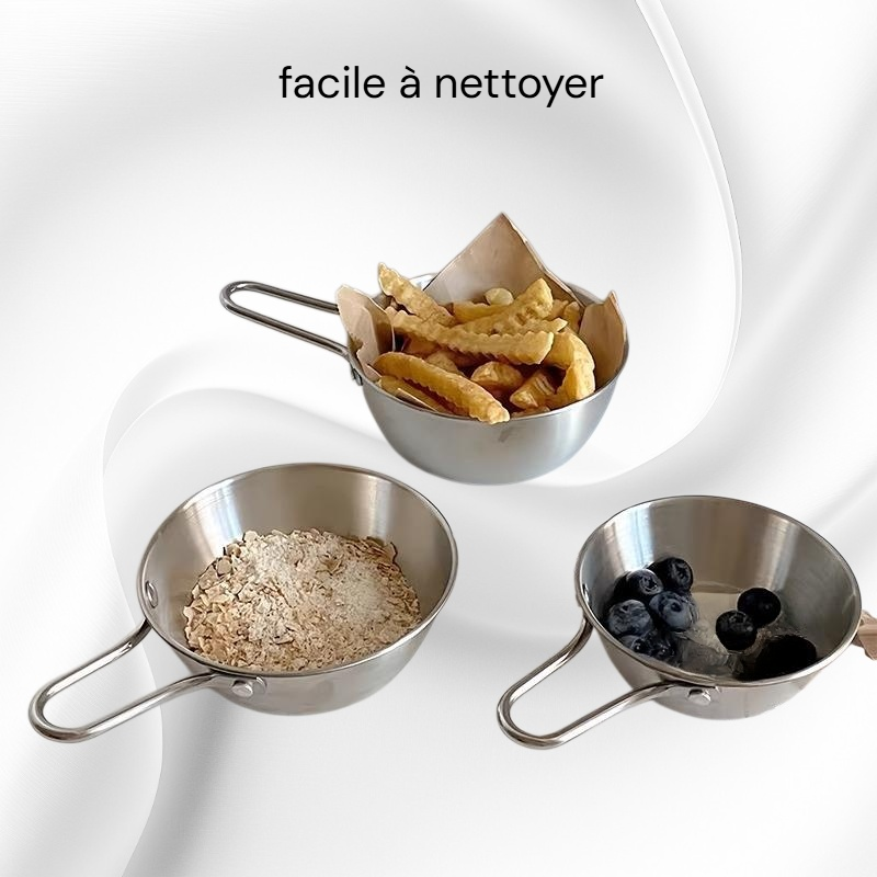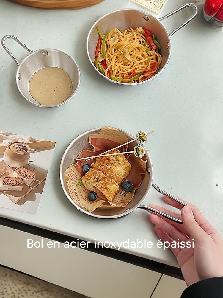 Bol à condiments en acier inoxydable, épaissi, avec poignée, idéal pour fondue et collations