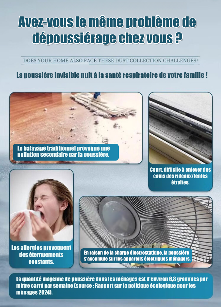 Marre de faire la poussière sans cesse ? Coffret anti-poussière polyvalent issu de la recherche biomédicale américaine,qui garde votre maison sans poussière et sans électricité !