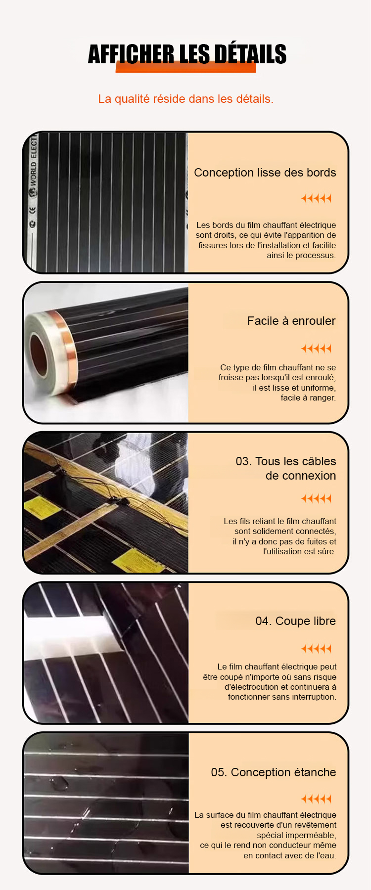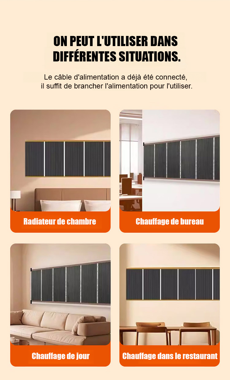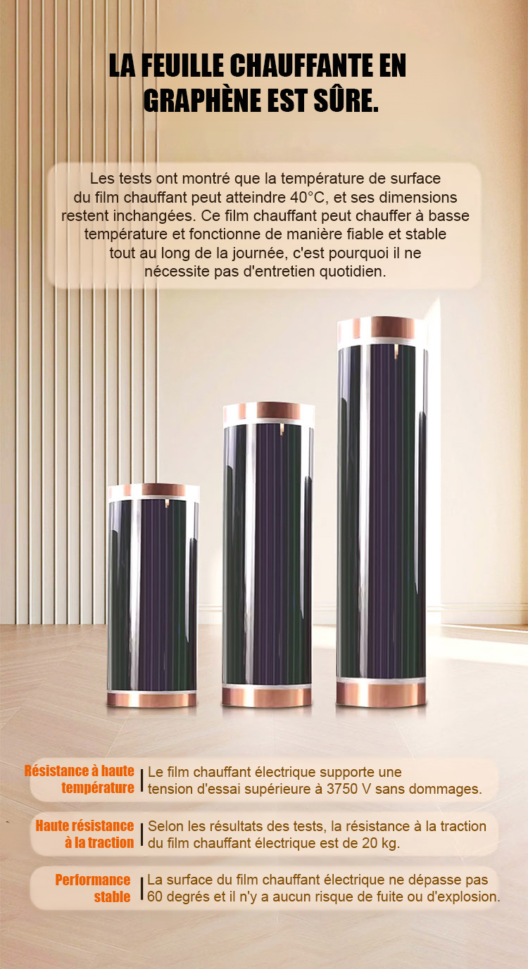 🌡️⚡ Dites adieu aux radiateurs encombrants et aux factures d'énergie excessives. Notre film chauffant au graphène se fixe simplement au mur pour une chaleur douce et instantanée (jusqu'à 60-70°C en seulement 5 minutes). Ultra-économe, silencieux et sans rayonnement nocif, c'est la solution idéale pour transformer chaque pièce en un cocon chaleureux sans perçage ni travaux.