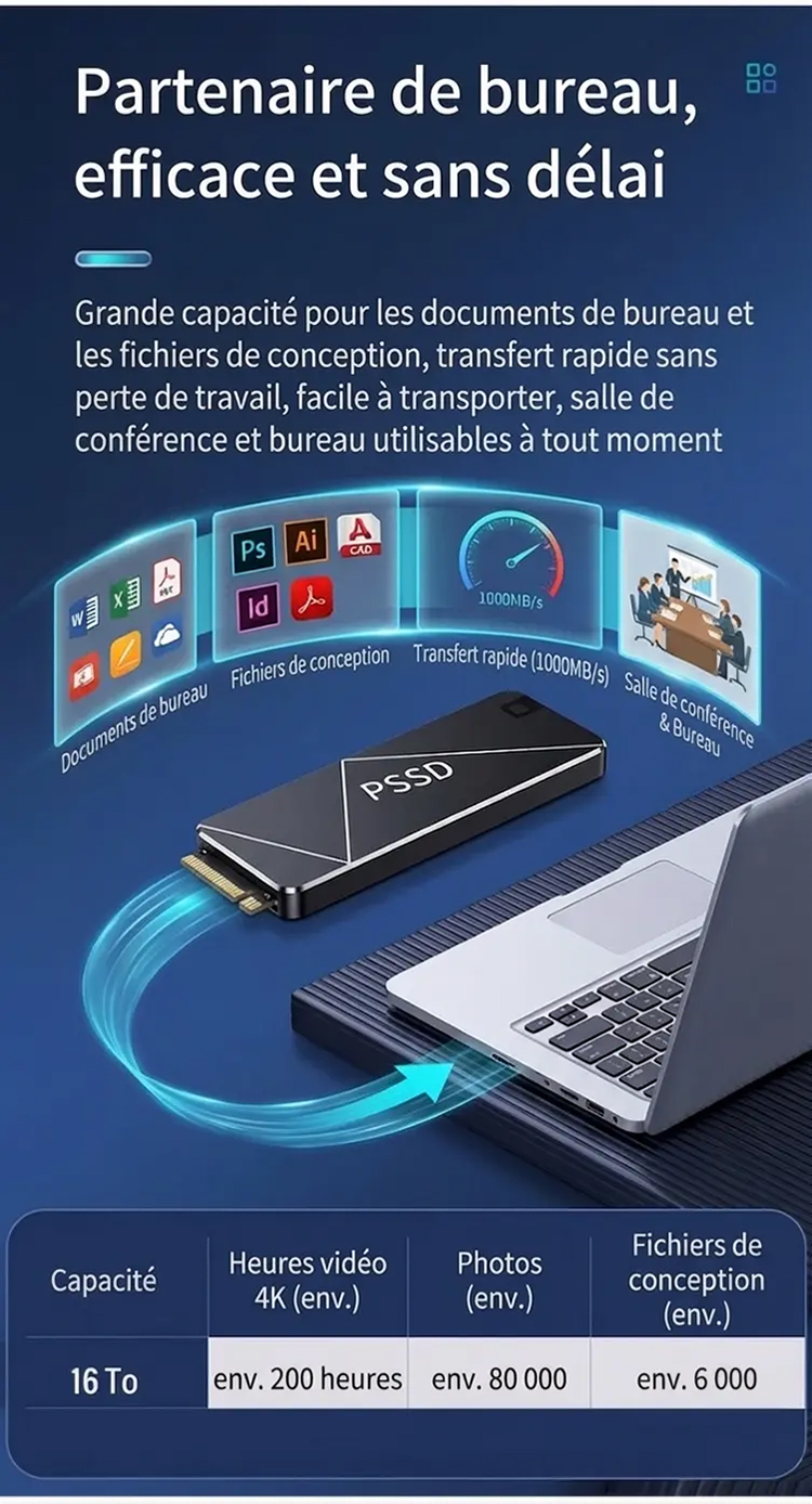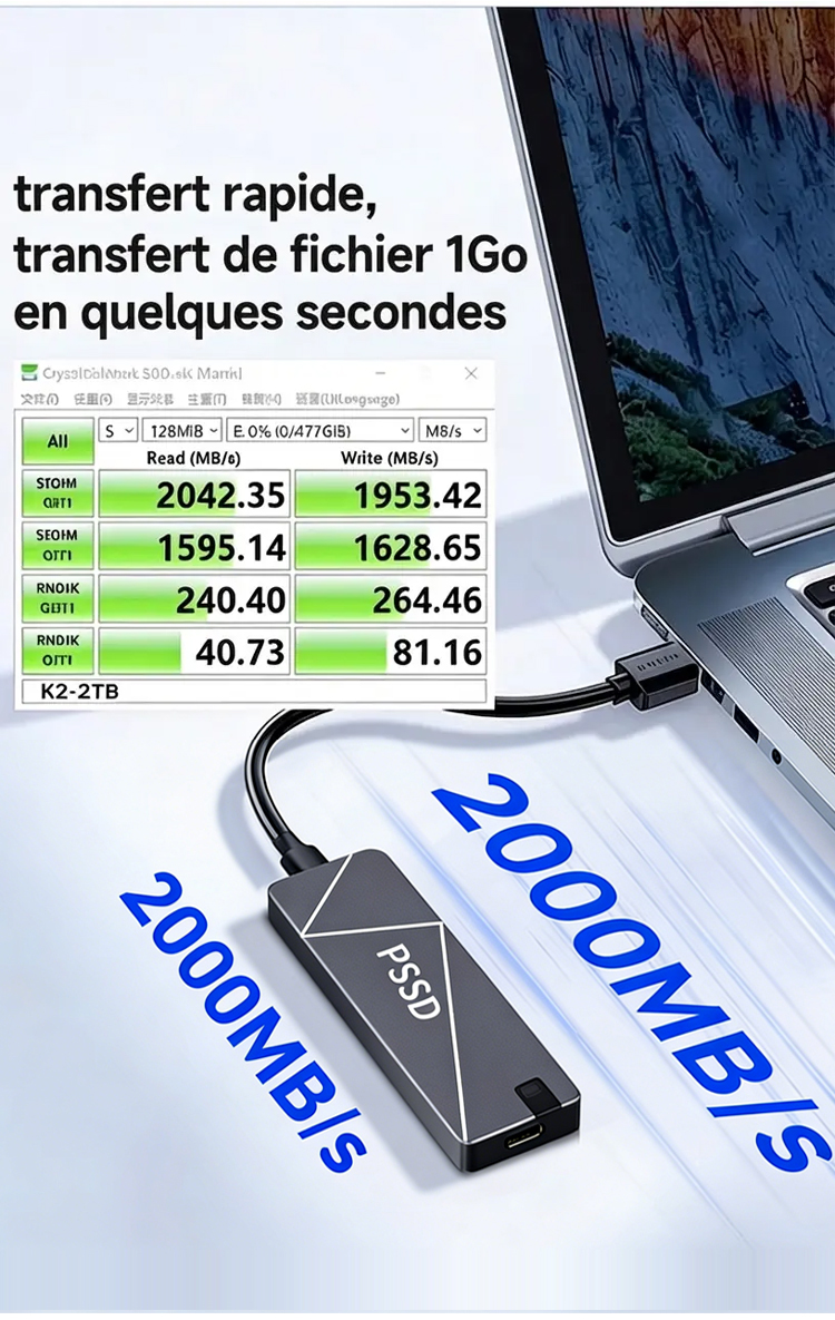⚡ Vitesse Extrême : Jusqu'à 1000 Mo/s (Transfert 4K en 3 min).